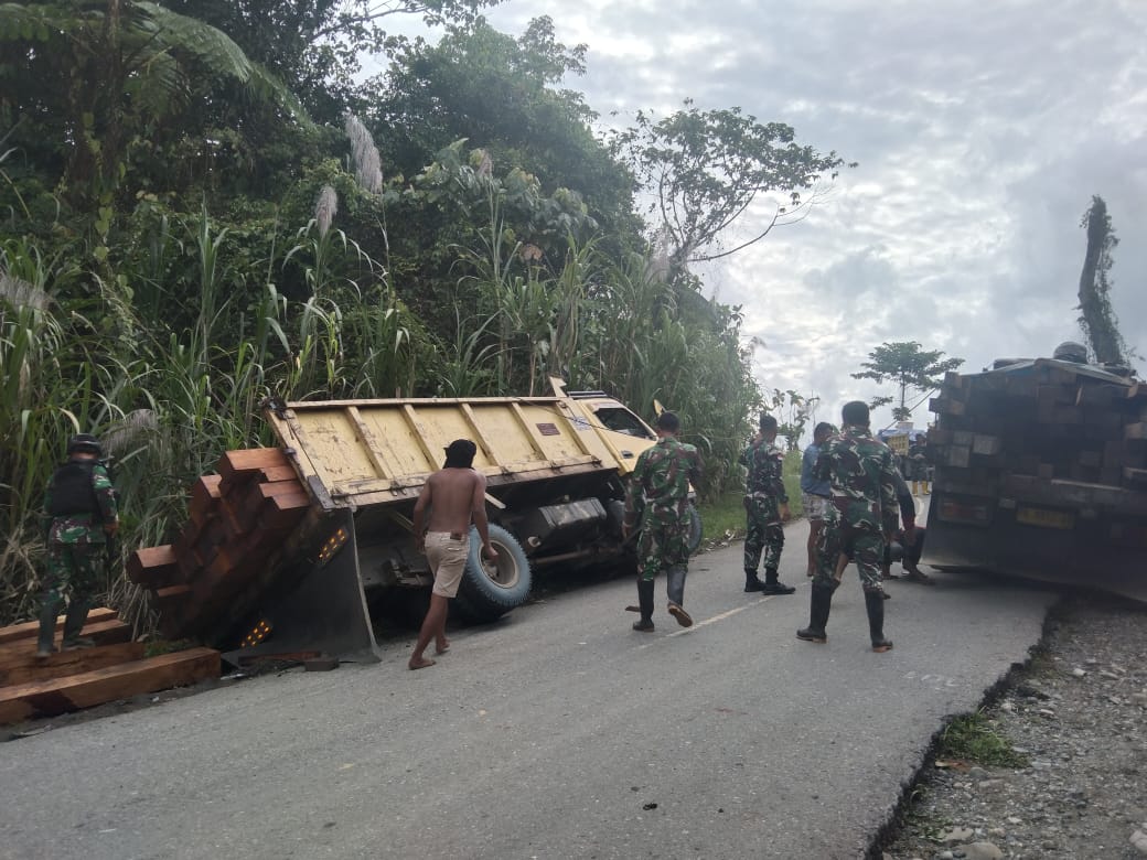 Kab.Keerom, reportaseaktual.com – Satgas Pamtas RI-PNG Yonif 132/BS Pos Ampas membantu masyarakat Papua yang mobilnya terjatuh dipinggir jalan Trans Jayapura-Wamena tepatnya Di Desa Ampas, Distrik Mannem, Kabupaten Keerom, Papua. Pada Hari Sabtu (07/01/2023).